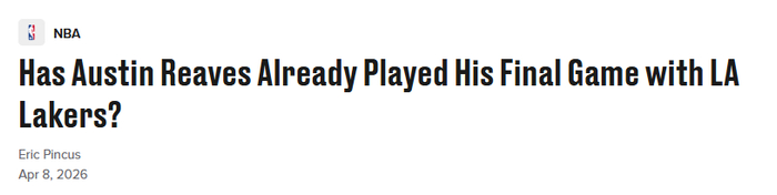 北京时间4月9日,里夫斯(斜肌伤势)预计还将缺阵3–5周,这让湖人在季后赛走得更远的希望蒙上巨大阴影。东契奇已于去年8月完成续约,而里夫斯将在7月1日进入自由市场,现在的问题变成:他会留在洛杉矶,还是去其他球队寻求更大机会?他打完湖人生涯最后一战了吗?知名美媒Bleacher Report带来了最新的报道——